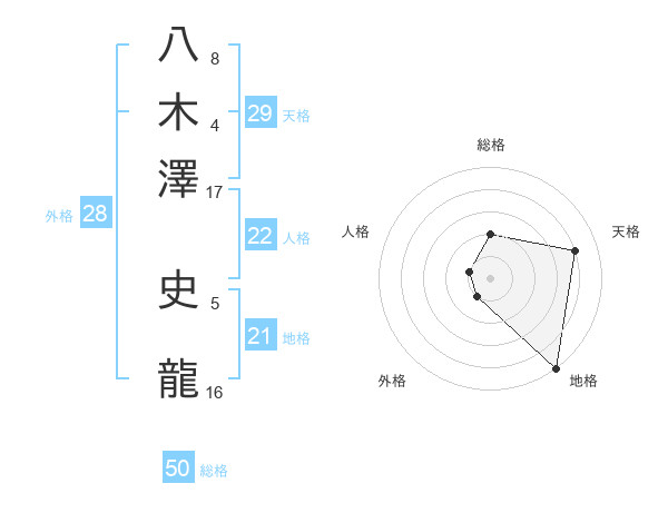 八木澤 史龍さんを姓名の画数から五運を鑑定