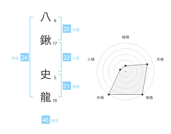 八鍬 史龍さんの天格は25画の4点!