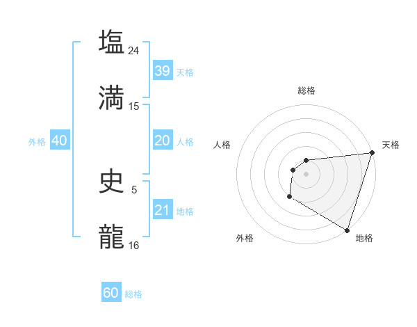 塩満 史龍さんの総格は60画の1点!