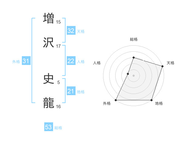 増沢 史龍さんを姓名の画数から五運を鑑定