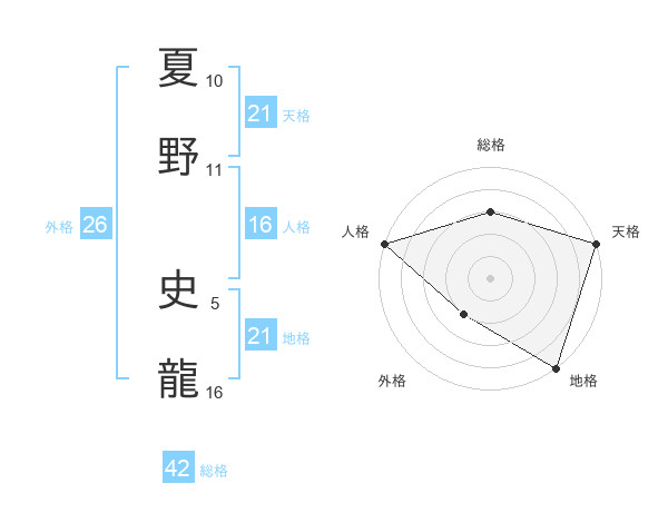 夏野 史龍さんの天格は21画の5点!