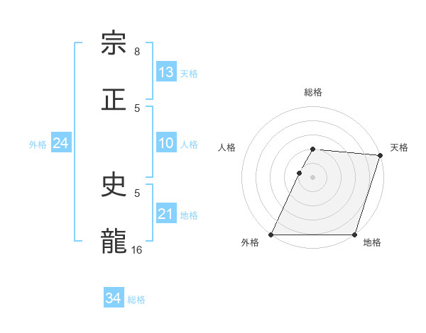 宗正 史龍さんを姓名の画数から五運を鑑定