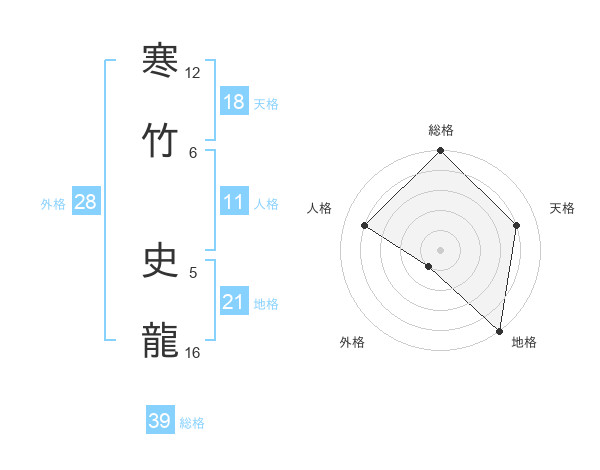 寒竹 史龍さんを姓名の画数から五運を鑑定