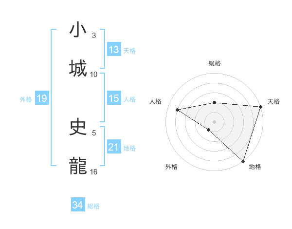 小城 史龍さんの総格は34画の2点!
