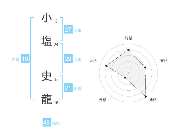 小塩 史龍さんを姓名の画数から五運を鑑定
