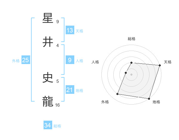 星井 史龍さんの天格は13画の5点!