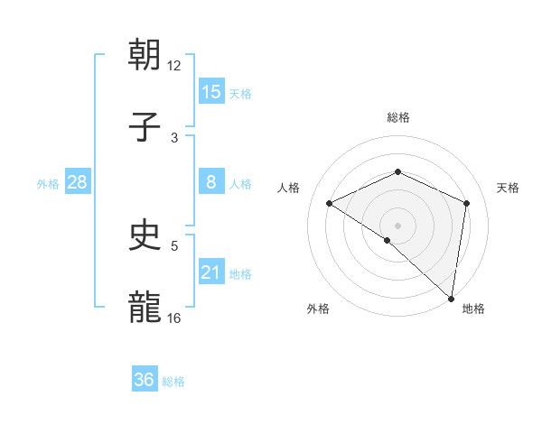 朝子 史龍さんの天格は15画の4点!