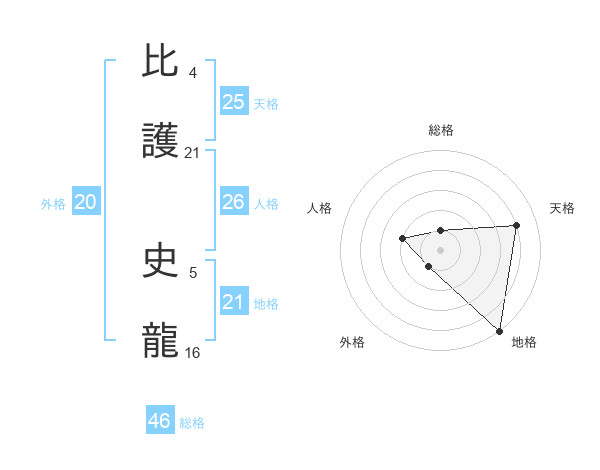 比護 史龍さんの天格は25画の4点!