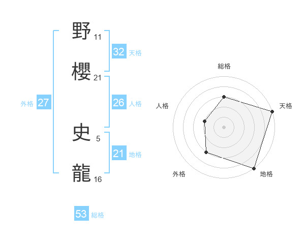 野櫻 史龍さんの総格は53画の3点!