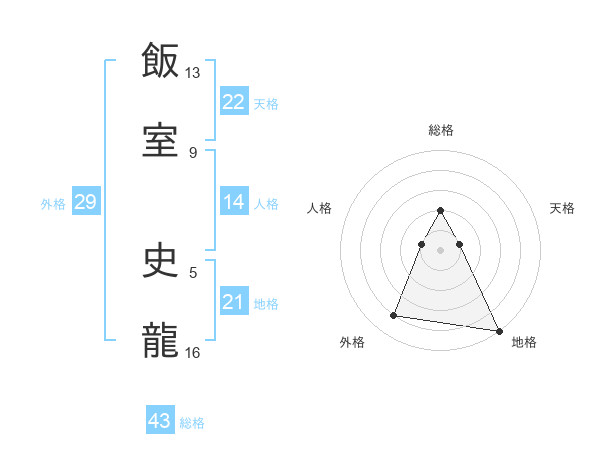 飯室 史龍さんの総格は43画の2点!