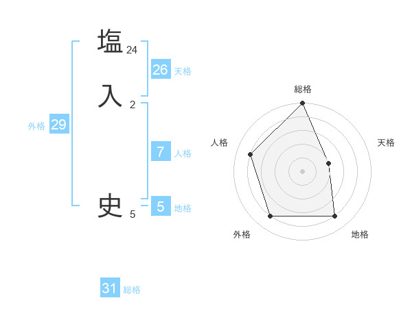 塩入 史さんの総格は31画の5点!
