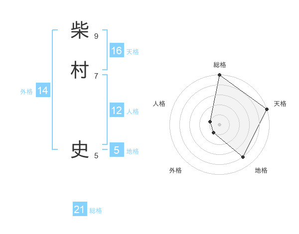 柴村 史さんの総格は21画の5点!
