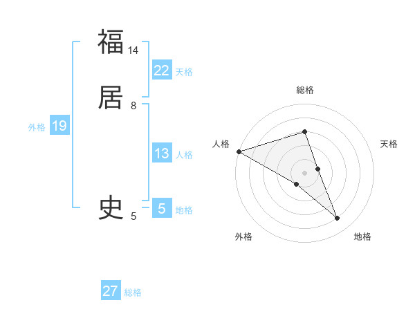 福居 史さんを姓名の画数から五運を鑑定