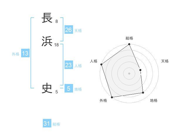 長浜 史さんの外格は13画の5点!
