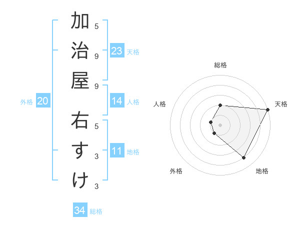 加治屋 右すけさんを姓名の画数から五運を鑑定
