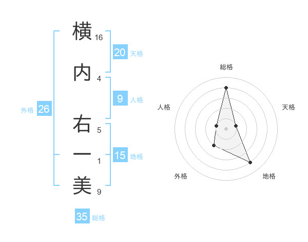 横内 右一美さんの総格は35画の4点!