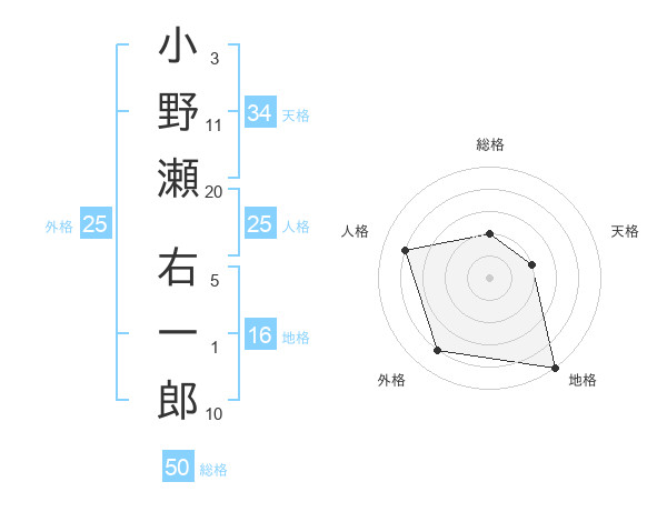 小野瀬 右一郎さんを姓名の画数から五運を鑑定