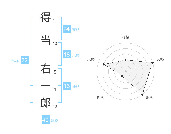 得当 右一郎さんを姓名の画数から五運を鑑定