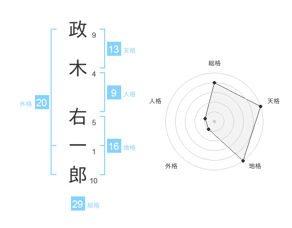 政木 右一郎さんを姓名の画数から五運を鑑定