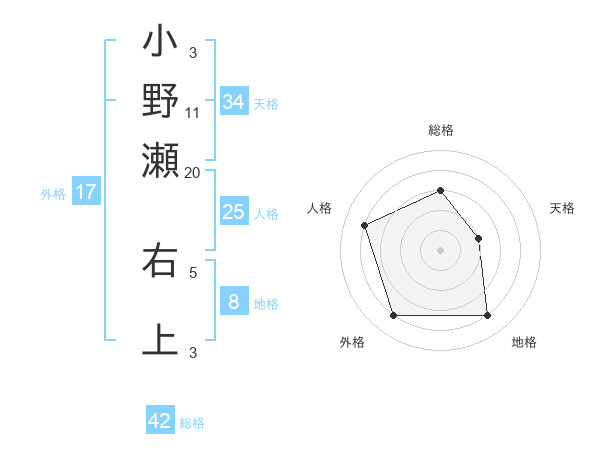 小野瀬 右上さんの総格は42画の3点!