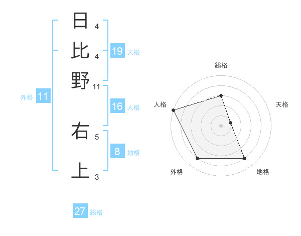 日比野 右上さんの総格は27画の3点!