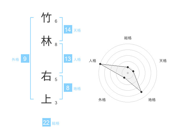 竹林 右上さんの総格は22画の1点!