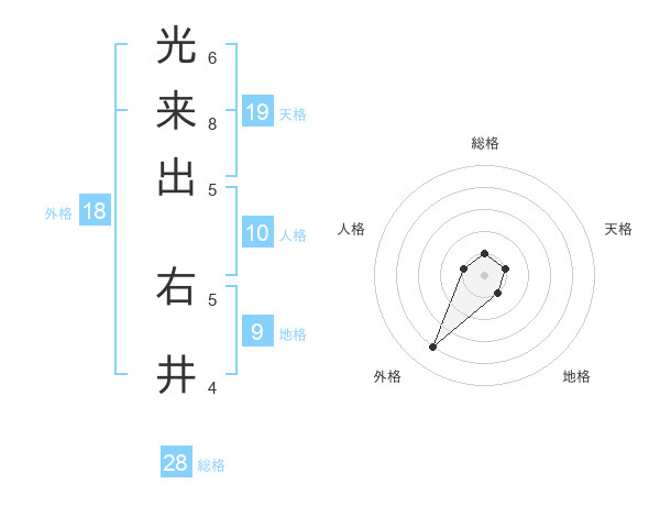 光来出 右井さんの総格は28画の1点!