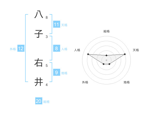 八子 右井さんの総格は20画の1点!