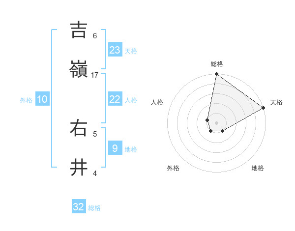 吉嶺 右井さんの総格は32画の5点!