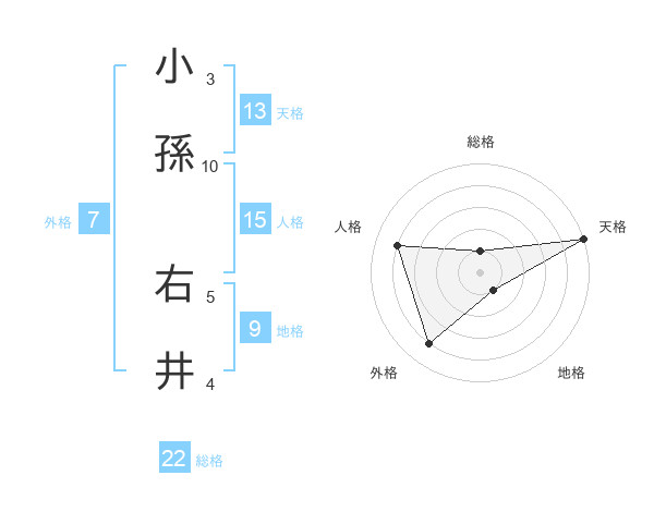 小孫 右井さんの総格は22画の1点!