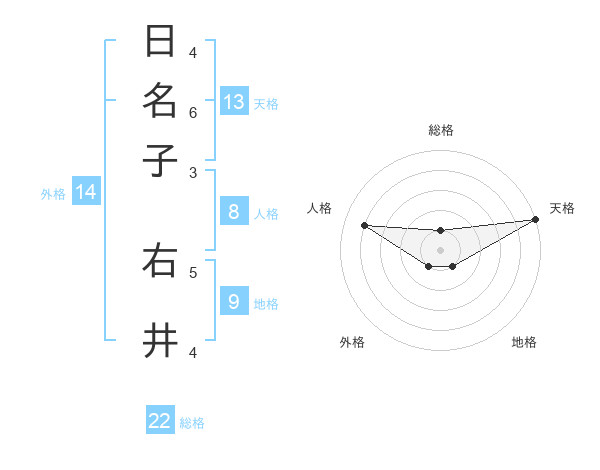 日名子 右井さんの天格は13画の5点!