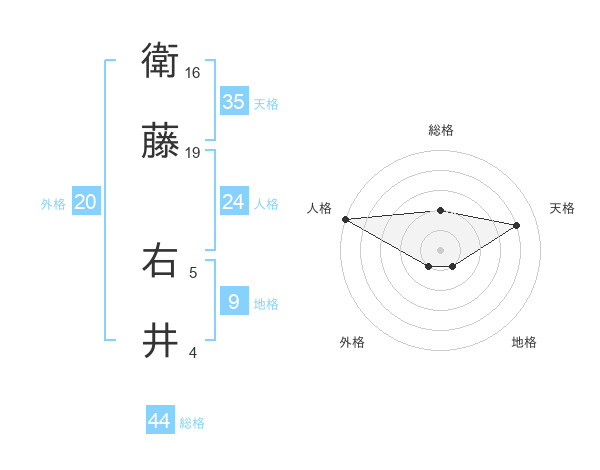 衛藤 右井さんの総格は44画の2点!