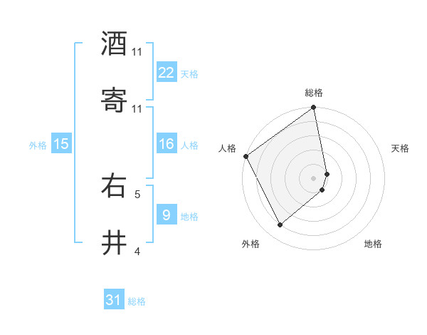 酒寄 右井さんの総格は31画の5点!