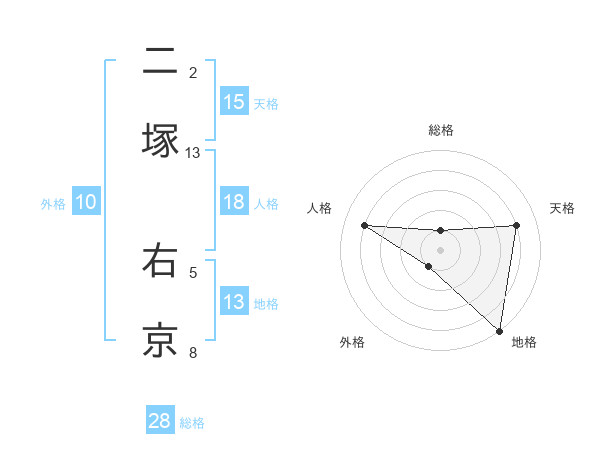 二塚 右京さんの総格は28画の1点!