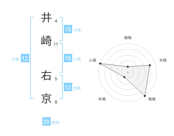 井崎 右京さんの総格は28画の1点!