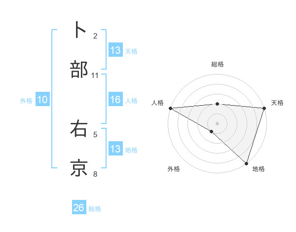 卜部 右京さんの地格は13画の5点!