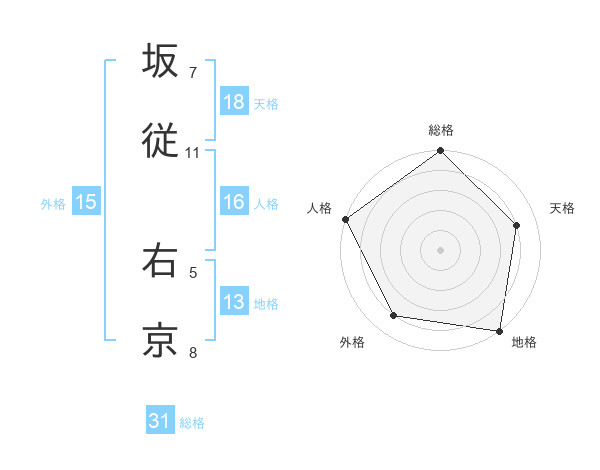坂従 右京さんの総格は31画の5点!