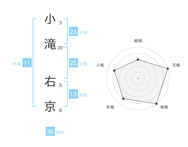 小滝 右京さんの天格は23画の5点!