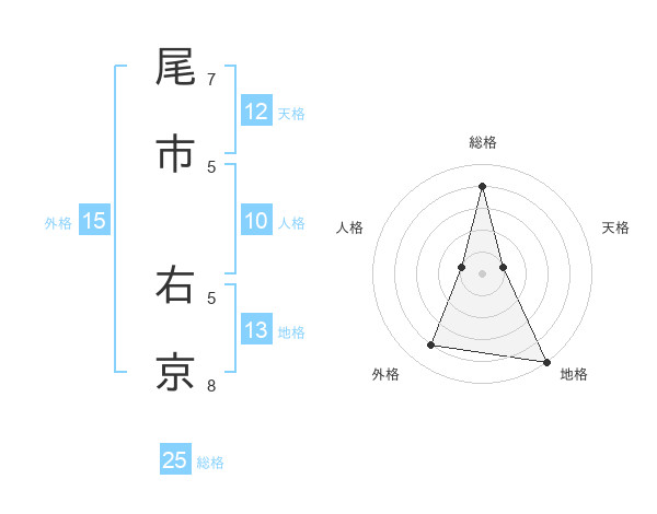 尾市 右京さんの総格は25画の4点!