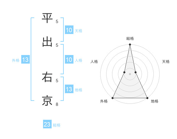 平出 右京さんの外格は13画の5点!