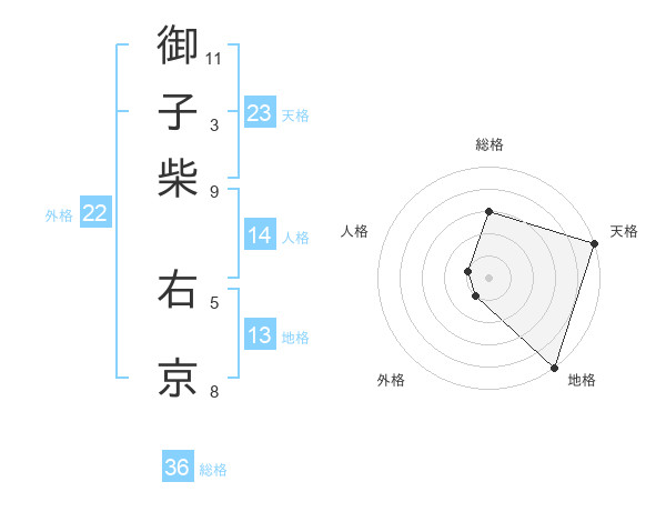 御子柴 右京さんを姓名の画数から五運を鑑定