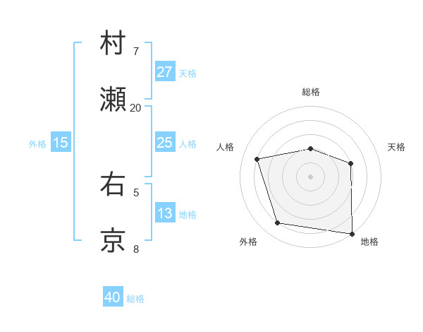 村瀬 右京さんの天格は27画の3点!