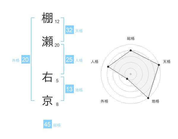 棚瀬 右京さんの総格は45画の4点!
