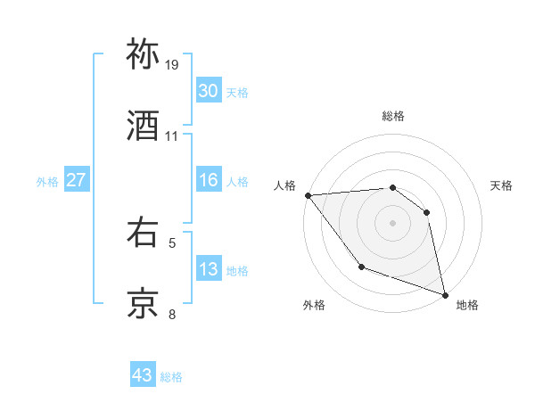 祢酒 右京さんの天格は30画の2点!