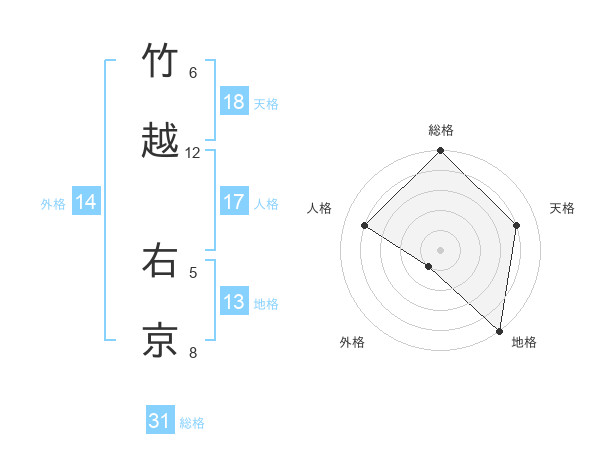 竹越 右京さんの総格は31画の5点!