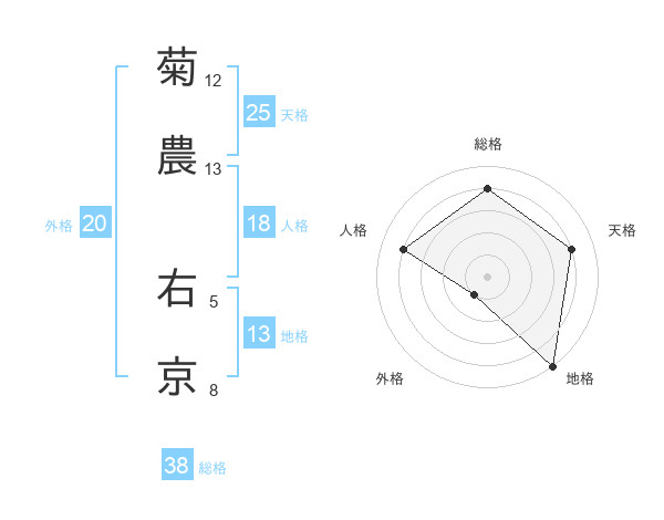 菊農 右京さんの総格は38画の4点!