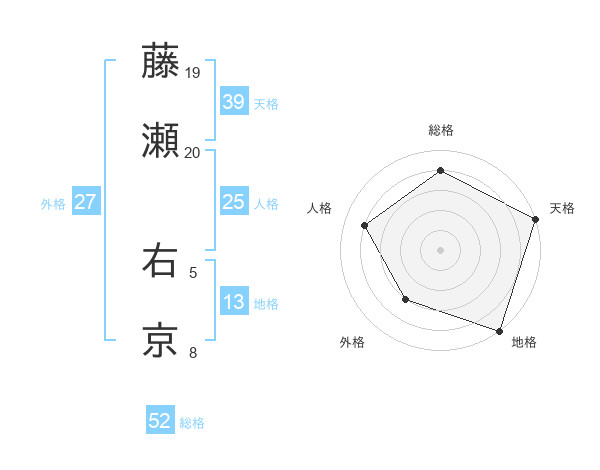 藤瀬 右京さんの総格は52画の4点!