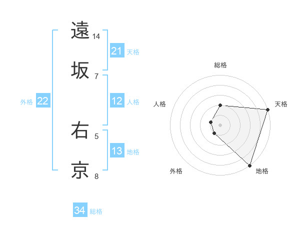 遠坂 右京さんの外格は22画の1点!
