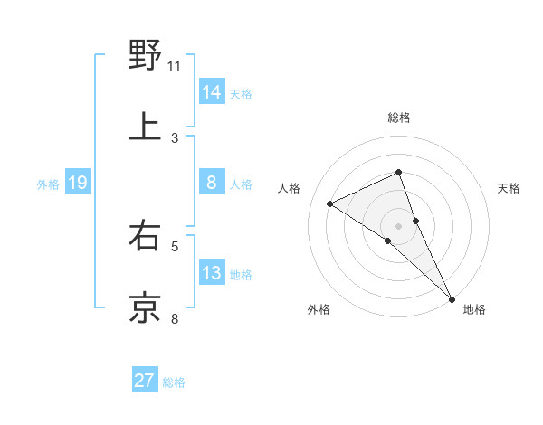 野上 右京さんの総格は27画の3点!