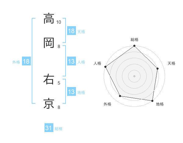 高岡 右京さんの総格は31画の5点!